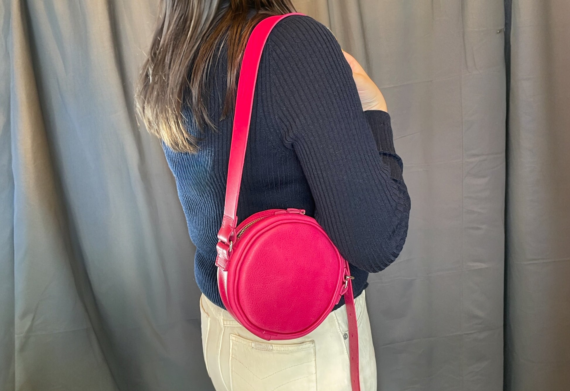 丸いふっくらしたショルダーバック。